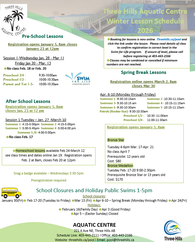 ***Annual Maintenance Shut Down from January 5-18, 2026. The pool will reopen Jan 19 at 6:30am.***